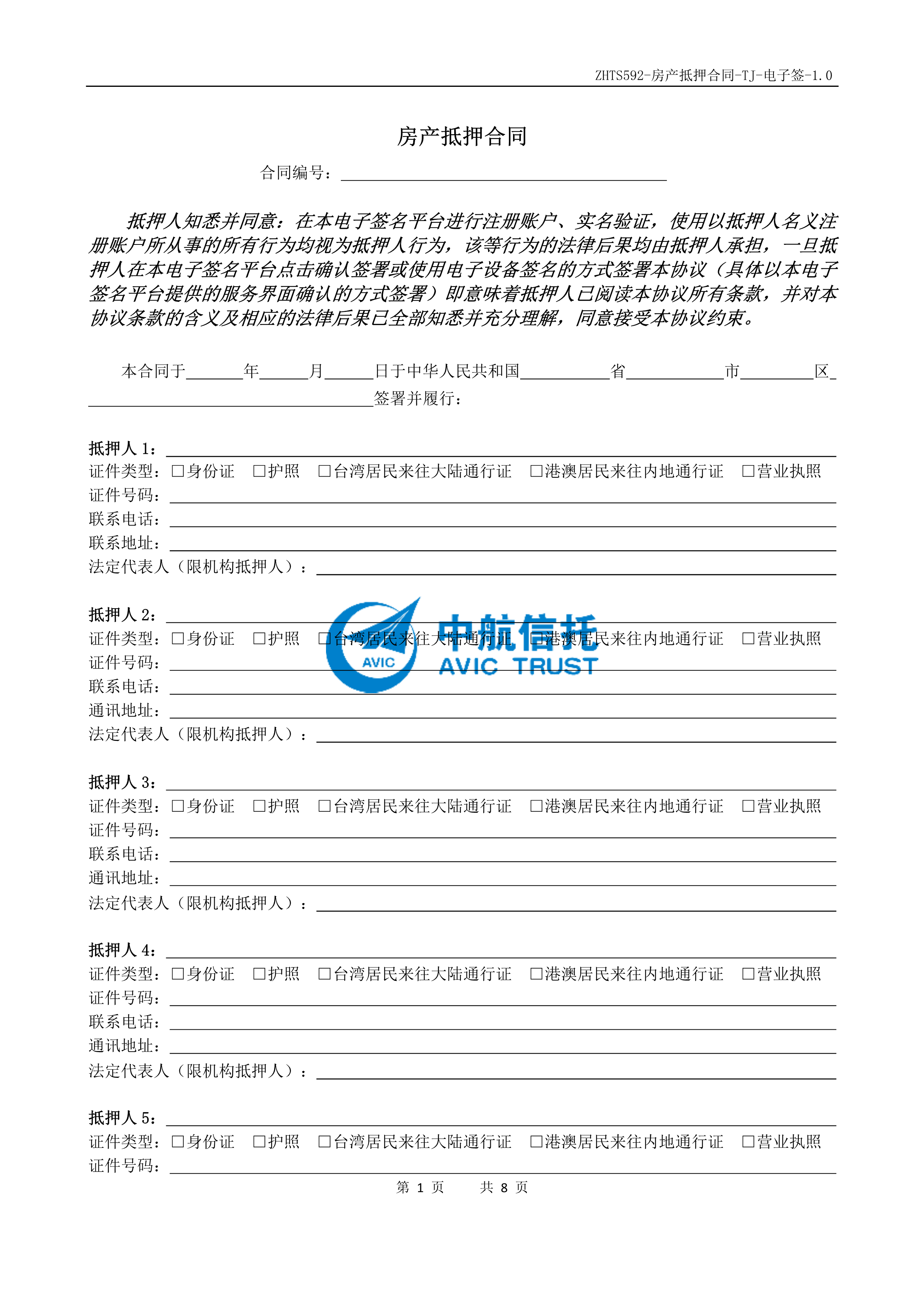 2-3-4安心贖、安心收、安心用、快贖貝、周轉(zhuǎn)貝、易貸貝-房產(chǎn)抵押合同(天津)-CA
